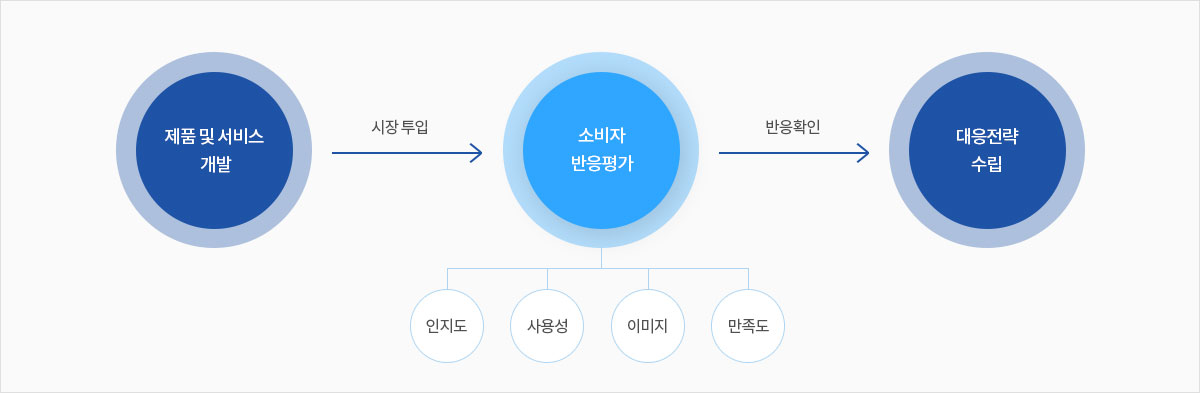 기업·브랜드·제품·광고 등 기업의 마케팅활동 영역에서 고객평가(인지도, 호감도, 이미지, 선호도, 효과성)를 실시하고, 마케팅조사를 통해 기업의 마케팅 경쟁력 향상을 위한 기초자료를 제공해 드립니다.